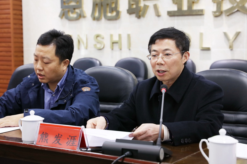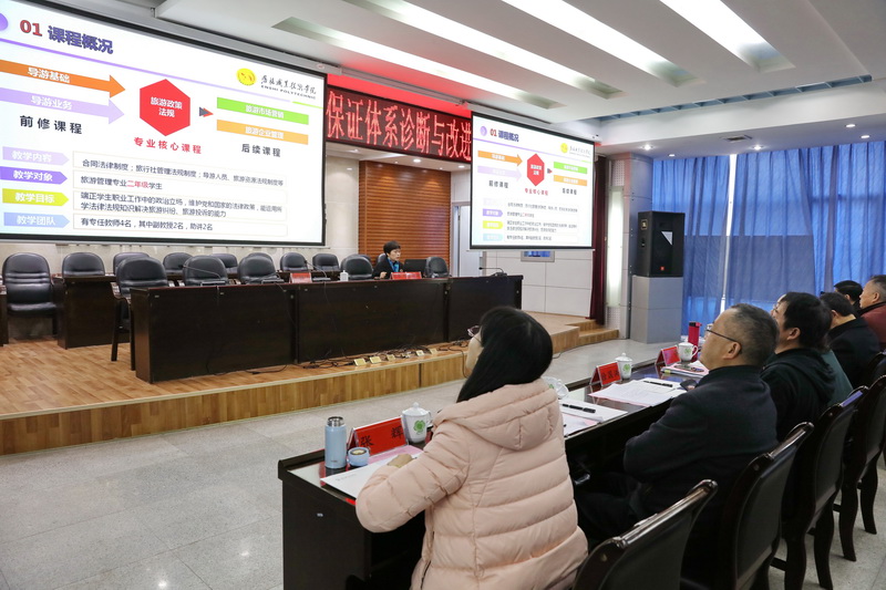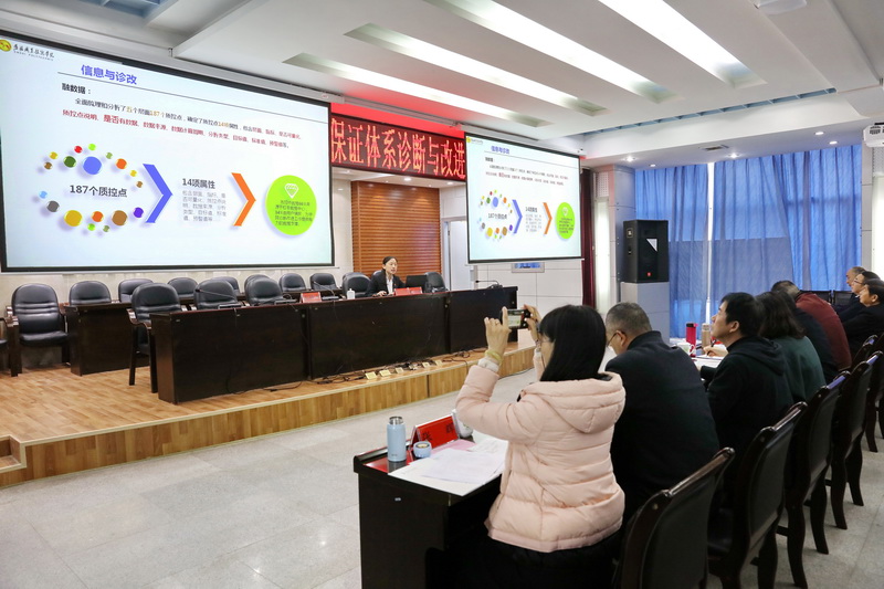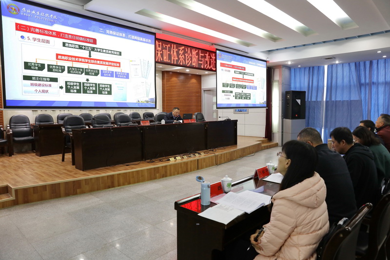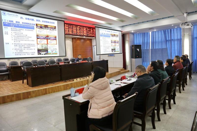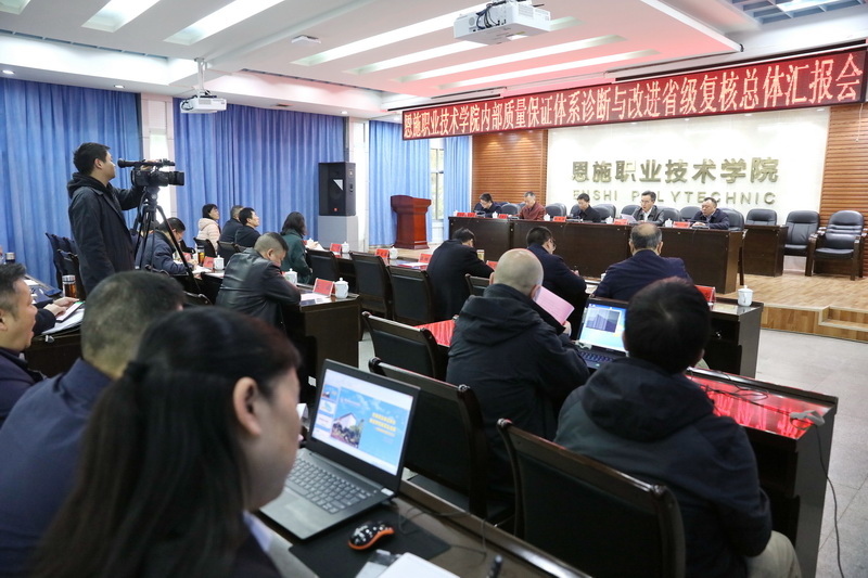 20日上午,診改複核總體彙報會在五會議室召開。彙報會分為兩個階段,第一階段由我校紀委書記陳平财主持并緻歡迎詞,恩施州人民政府副州長丁文平介紹我州和我校基本情況并對專家組莅臨表示歡迎,專家組組長、黃岡職業技術學院副校長熊發涯對此次診改複核的工作流程和内容作了具體安排,提出了明确要求。第二階段議程由熊發涯主持,我校校長張捷做了題為“完善質量保證體系推進學校高質量發展”的彙報,他從七個方面介紹了我校診改工作總體情況。随後,旅遊管理專業負責人劉斌做了專業診改彙報,旅遊政策法規課程負責人龔詩萍做了課程診改彙報,網絡信息中心負責人舒尚春做了信息化建設工作彙報。