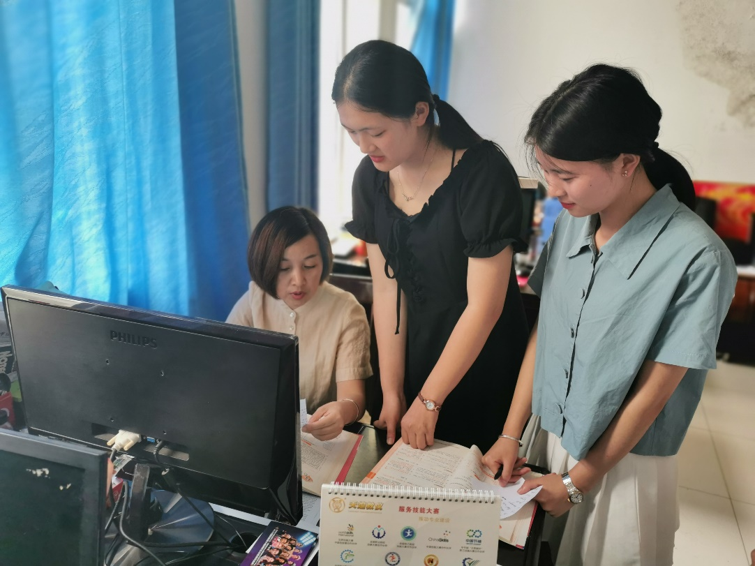 然而在成績的背後,她所遇到的艱難險阻是難以想象的。國賽中導遊英語口語環節考核的是學生作為導遊在帶團過程中解決遊客的各種投訴。這個對學生的旅遊專業知識和英語能力要求極高,然而學生的英語基礎都很差,面對這個問題,她總是很有耐心,從單詞入手,自己錄音,讓學生反複聽,并一遍又一遍地詢問學生有哪一處地方沒有聽懂,一遍又一遍地鼓勵學生要不懼困難,迎難而上。她總是天還蒙蒙亮就趕往辦公室準備當天需要輔導的學習資料,夜晚又常常是她的辦公桌上亮着最後一盞燈火。在輔導的幾個月裡,她從沒有節假日和周末,每當看到學生取得哪怕是一丁點的進步,她都由衷地為此高興。而每當這些選手感到無法堅持下去而想要放棄時,她總會變成知心媽媽傾聽學生内心的想法并誠懇地提出自己的看法,與他們拉拉家常,放松心情。她就是這樣,嚴格地要求自己和她的學生們。