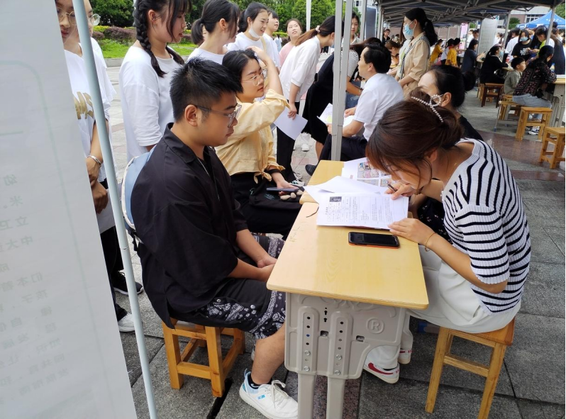 招聘會現場秩序井然。畢業生與招聘方積極交流,根據自己的專業、特長和愛好,認真選擇适合的崗位。本次參加招聘會的單位共39家,學前教育專業、小學教育專業500餘畢業生到場,确定意向性崗位464個。