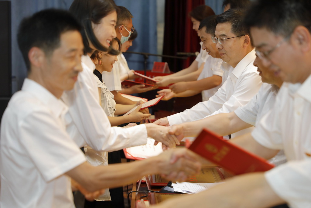 學校黨委班子對表揚的先進集體和先進個人代表進行了頒獎