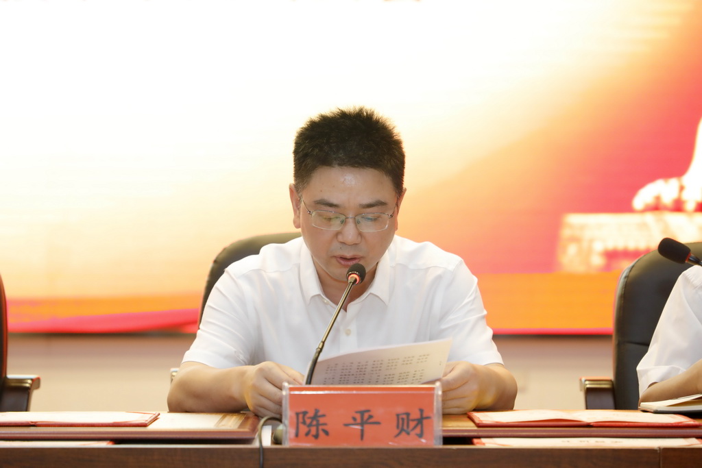 陳平财同志宣讀《關于表揚先進基層黨組織、優秀黨務工作者、優秀共産黨員的決定》