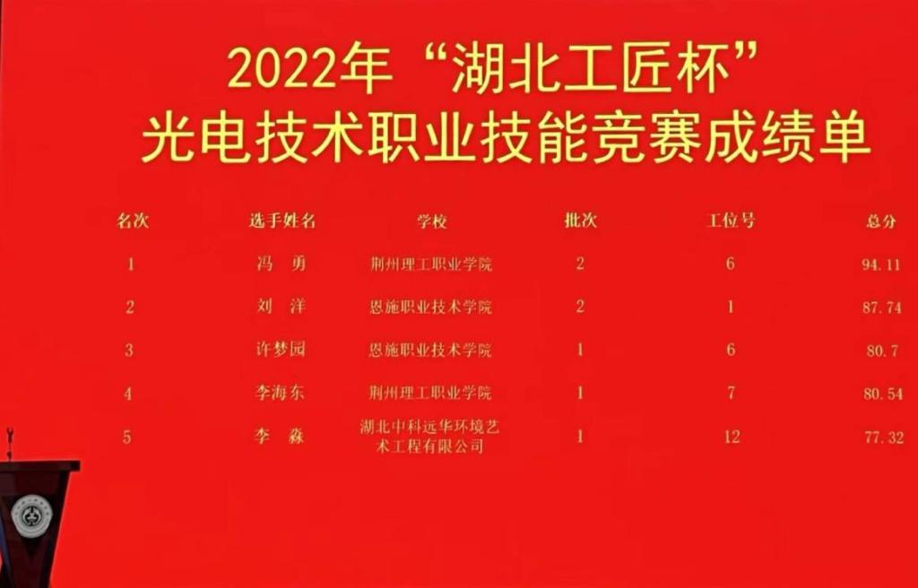(通訊員 向丹鳳)6月23日,2022年“湖北工匠杯”技能大賽光電技術職業技能競賽在荊州理工職業學院舉行,來自全省13個參賽單位的30名選手,圍繞戶外LED燈帶裝飾制作與安裝和照明應用場景仿真等内容同台競技。24日,比賽結果公布,我校學子喜獲佳績。