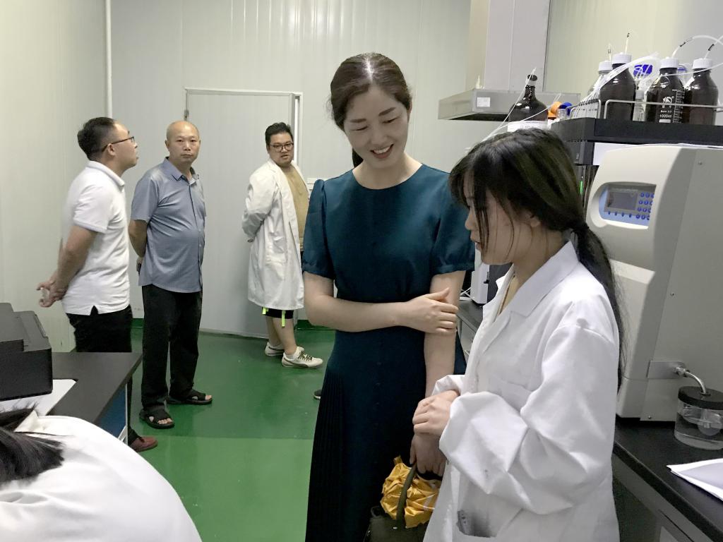 胡平一行在公司總經理李豔權的陪同下首先參觀了化驗室、提取車間、研發中心、倉庫、鍋爐間、藥材養護區等生産空間,期間一一詢問我校“一正藥業班”見習學生的學習工作情況、住宿條件、業餘生活等,學生紛紛表示滿意企業現有條件,在此見習能真正實現學用結合。随後,校企雙方與見習學生代表座談。